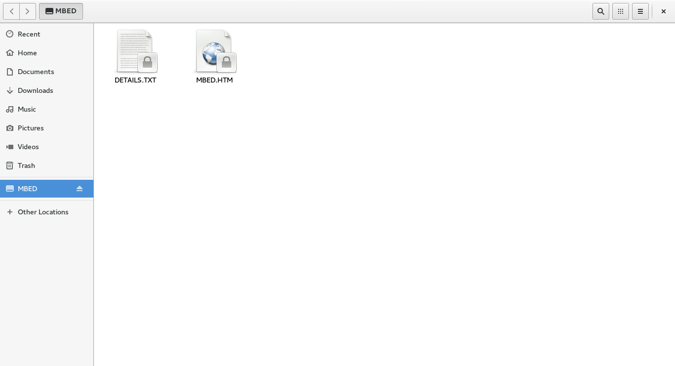 Ao conectar a placa no USB, estes arquivos deverão aparecer e quando acessar MBED.HTM o reconhecimento da placa é feito automaticamente