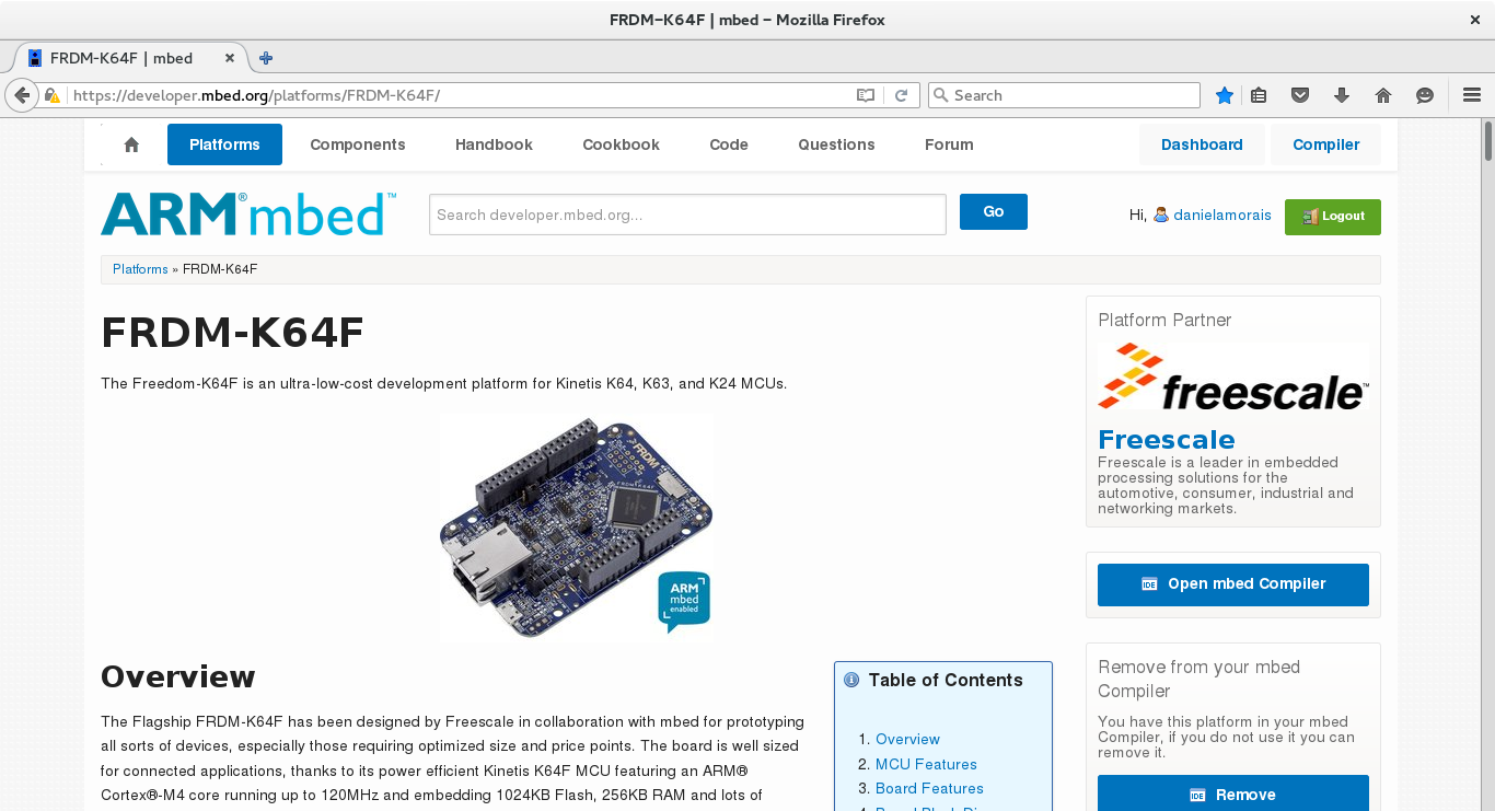 A K64F da Freescale (atual NXP Semiconductors) é uma placa poderosa programável em C++, equipada com um ARM Cortex-M4F no seu microcontrolador que pode operar até 120MHz, possui 1MB de memória flash e 256KB de RAM.