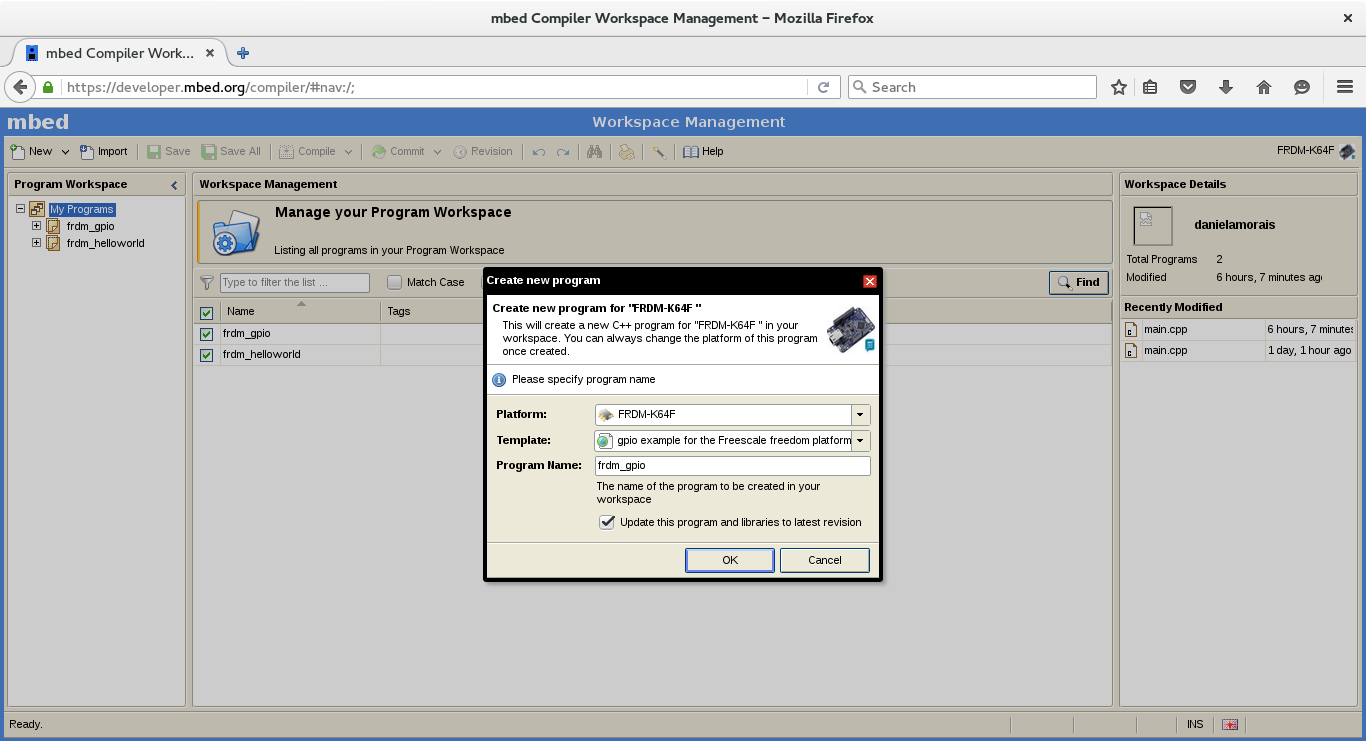 Acesse o compiler, uma IDE Online abrirá com todos os projetos já criados ou clique com o lado direito em My programs > New program... para criar um novo programa e selecione um dos exemplos listados em Templates